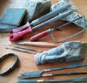 Der in Form (Schmuck, Objekte) gebrachte Stein kann rau belassen oder nachträglich geschliffen und poliert werden, wodurch die Farbigkeit und der Glanz der Steinoberfläche besonders stark zur Geltung kommen.