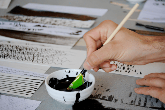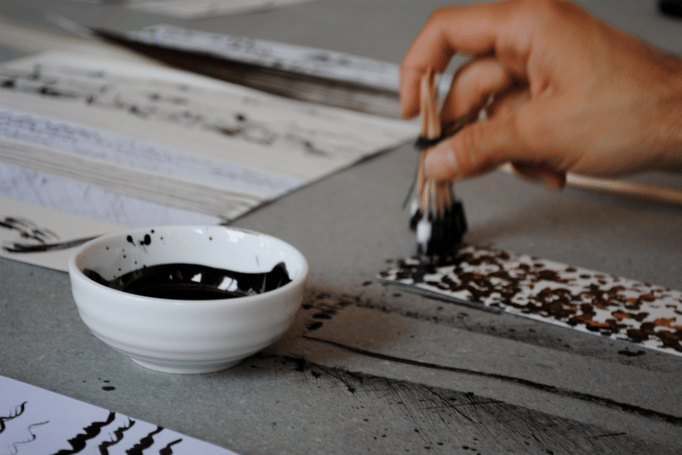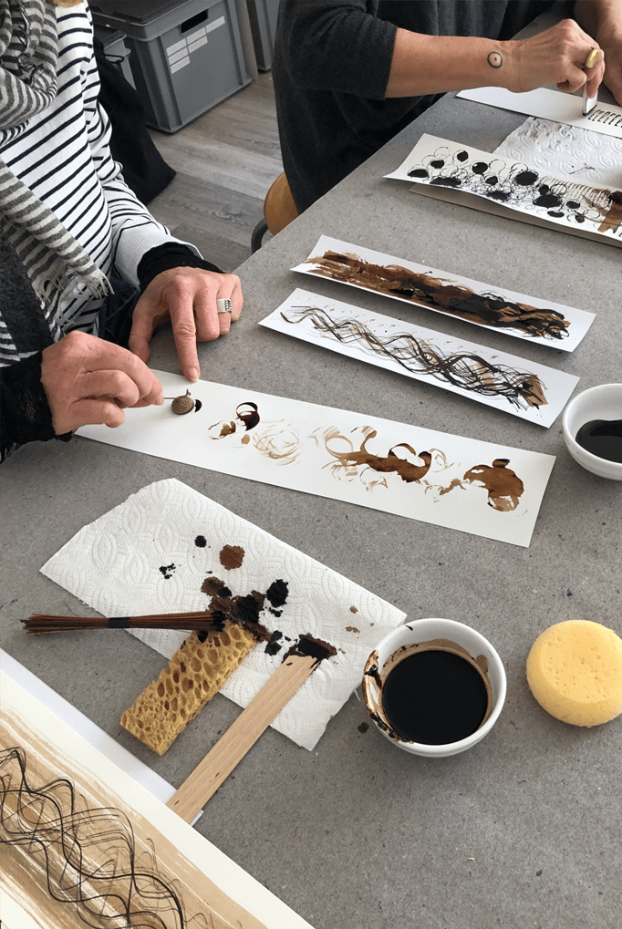 Wir experimentieren mit den selbsthergestellten Werkzeugen und setzen mit Nusstinte und Tusche Spuren auf Papier. Dabei lassen wir uns überraschen, wozu uns die verschiedenen Werkzeuge (ver-)führen werden. Die entstandenen Werke können in einem Bilderrahmen* gefasst oder zu einfachen Notizheften verarbeitet werden. *können zusätzlich bestellt werden (Spezialanfertigungen möglich)