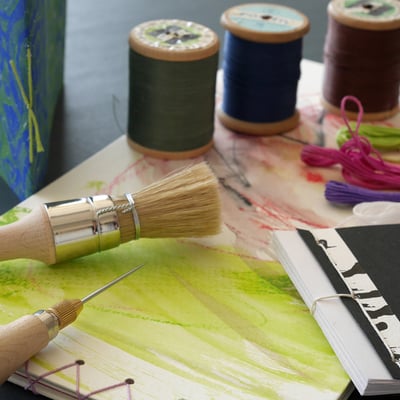 Mit unterschiedlichen Methoden, wie beispielsweise der japanischen Buchbindetechnik oder der Klebebindung, kreieren wir einfache Bücher und Notizhefte und schaffen einzigartige Unikate.
